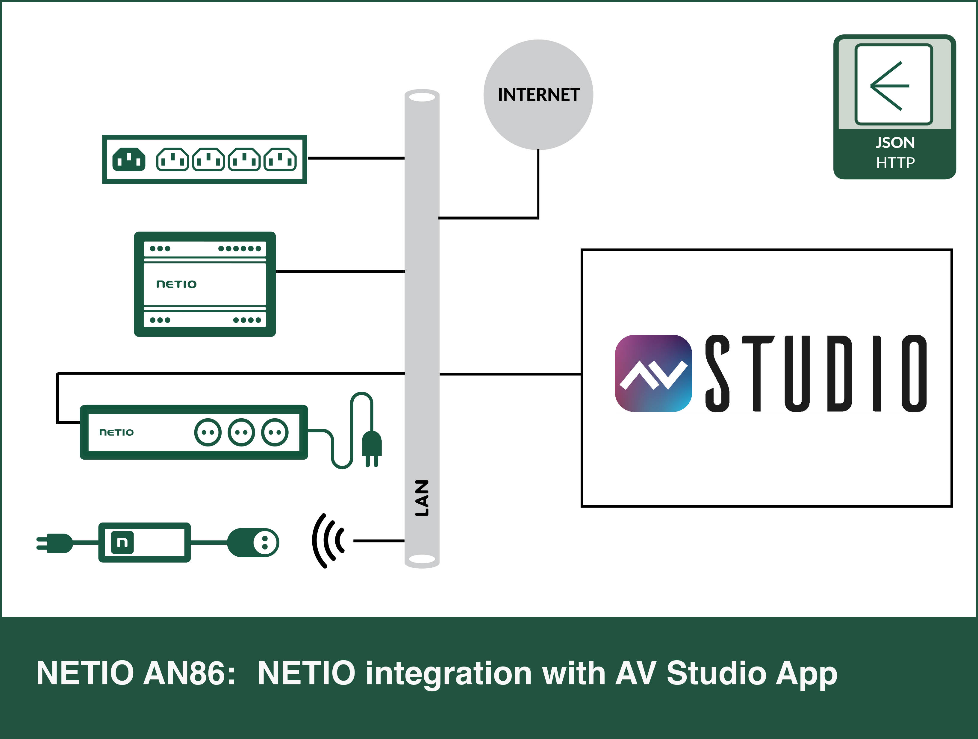 The AN86 demonstrates how to control and monitor NETIO smart power outputs from the AVstudio environment.
