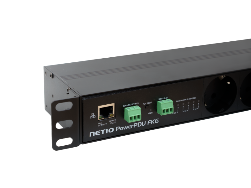 The NETIO PowerPDU FK6 is a smart three-phase power distribution unit designed for robust installation requiring high power control in AV (as LED WALLs power control), IT, and industrial automation environments.