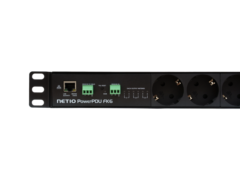 The device is also equipped with two Digital Inputs (DI), those can be used for direct connection to a NETIO sensors, NETIO nBus (device daisy-chaining feature), or an S0 counter. Additionally, the PowerPDU VK6 supports both LAN connectivity and integrates all the benefits of the NETIO Toolbox.
